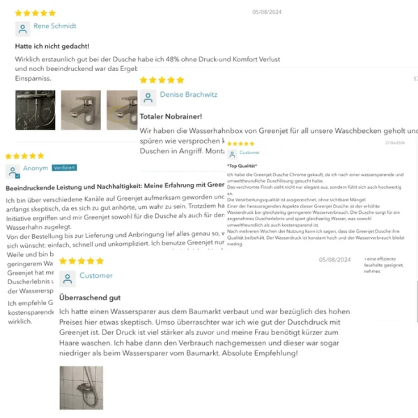 Kompatibilität: Die GREENJET Düse funktioniert auf allen herkömmlichen ½ Zoll Duscharmaturen.